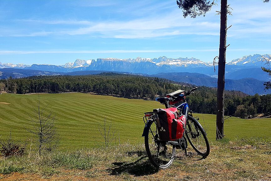Diese wird an diesem Tages aber nur durchfahren und kurz besucht, denn es steht eine weitere Seilbahnfahrt hinauf auf den Ritten nach Oberbozen an, in die sogenannte Sommerfrische. Nach einer kurzen Fahrradetappe wird die vorletzte Nacht in Klobenstein nun in den Bergen verbracht, bevor es am Folgetag zuerst noch ein wenig über die Höhen bis Barbian und nach einer weiteren steilen Abfahrt über eine alte Bahntrasse durch das Eisacktal zurück zum Reiseziel Bozen geht.