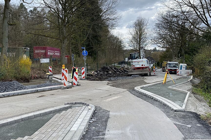 Die alte Bahntrasse während der Bauarbeiten zur Bevorrangung der Radfahrenden. © B. Schomm