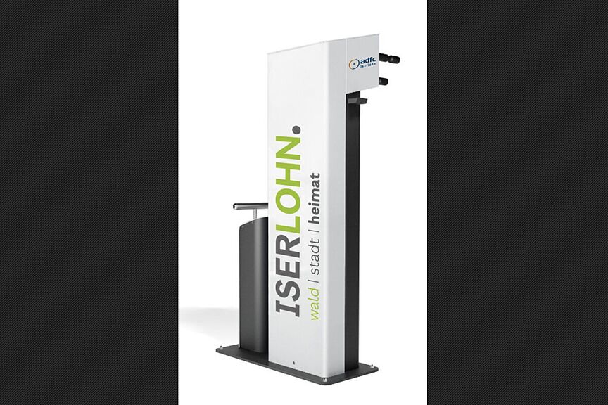 Auch wurde vereinbart, dass der ADFC Iserlohn ehrenamtlich die Rolle eines “Kümmerers” für diese Station übernimmt und so nach regelmässigen Sichtprüfungen bei Bedarf den Wartungs- und Reparaturbedarf zur Mängelbeseitigung an die zuständige Stelle meldet. Und als kleines Dankeschön dafür, prangt dann das Vereinslogo des ADFC Iserlohn an markanter Stelle auf der Station.